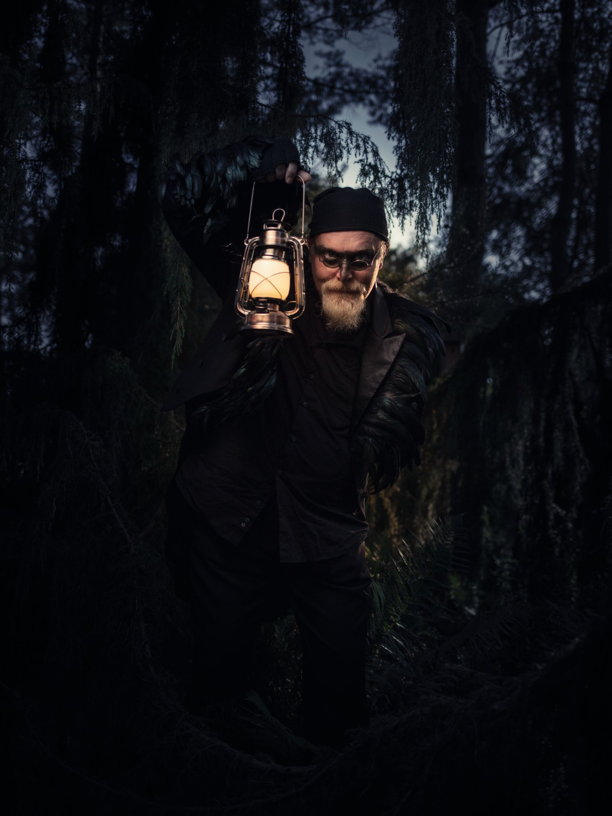 Niemand kennt sich besser in der Finsternis aus. Edgar Allen Poes Rabe löst sich aus dem Gruselgedicht und lädt das Publikum ein zu einem schaurig-makabren Spaziergang durchs Dunkelgrün. Denn dieser düstere Vogel kann nicht nur „Nimmermehr“ von sich geben. Er vermag die Seelen Verstorbener zu sehen, weiß genau, wo sich auf welche Weise Morde zugetragen haben und trägt diese Geschichten in Zeilen rabenschwarzen Humors vor. Er berichtet über Werwölfe und Vampire, über lebensmüde Lebende und überaus lebendige Tote, macht sich über den Aberglauben der Menschen lustig und präsentiert dabei manchen Klassiker: Er führt durch den Busch, wo Ringel natzen, krächzt lyrische Fontanen und über allem glimmt der Morgenstern.