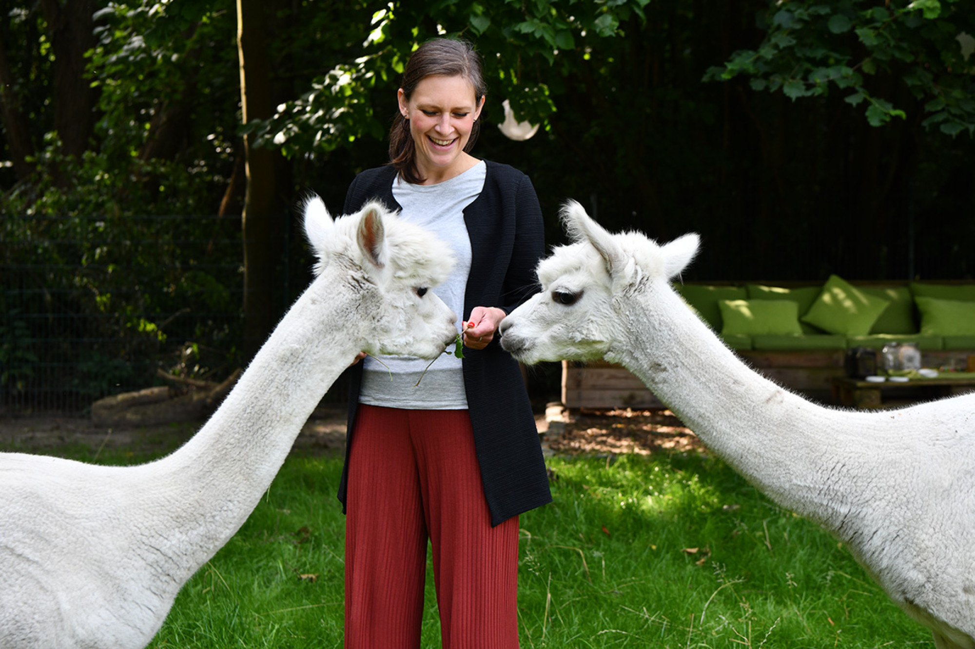 Wenn Kathrin Wegner die Halfter rausholt, dann wissen Balou, Kira, Phönix und Vaiana sofort Bescheid: Jetzt ist Arbeit angesagt. Denn die vier Alpakas gehören fest zum Team der pädagogischen Fachkraft und Fachwirtin im Erziehungswesen aus Castrop-Rauxel. Gemeinsam mit ihren tierischen Begleitern bietet sie tiergestützte Pädagogik für Familien und Kinder mit einem Handicap oder Förderbedarf, für Schulkinder aus Regel- und Förderschulen sowie für Unternehmen an. Und – so viel sei an dieser Stelle verraten – bis jetzt haben die flauschigen Vierbeiner jeden in ihren Bann gezogen.
